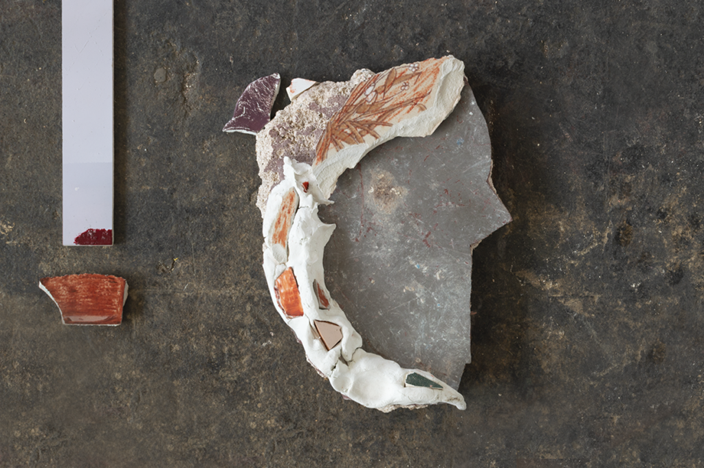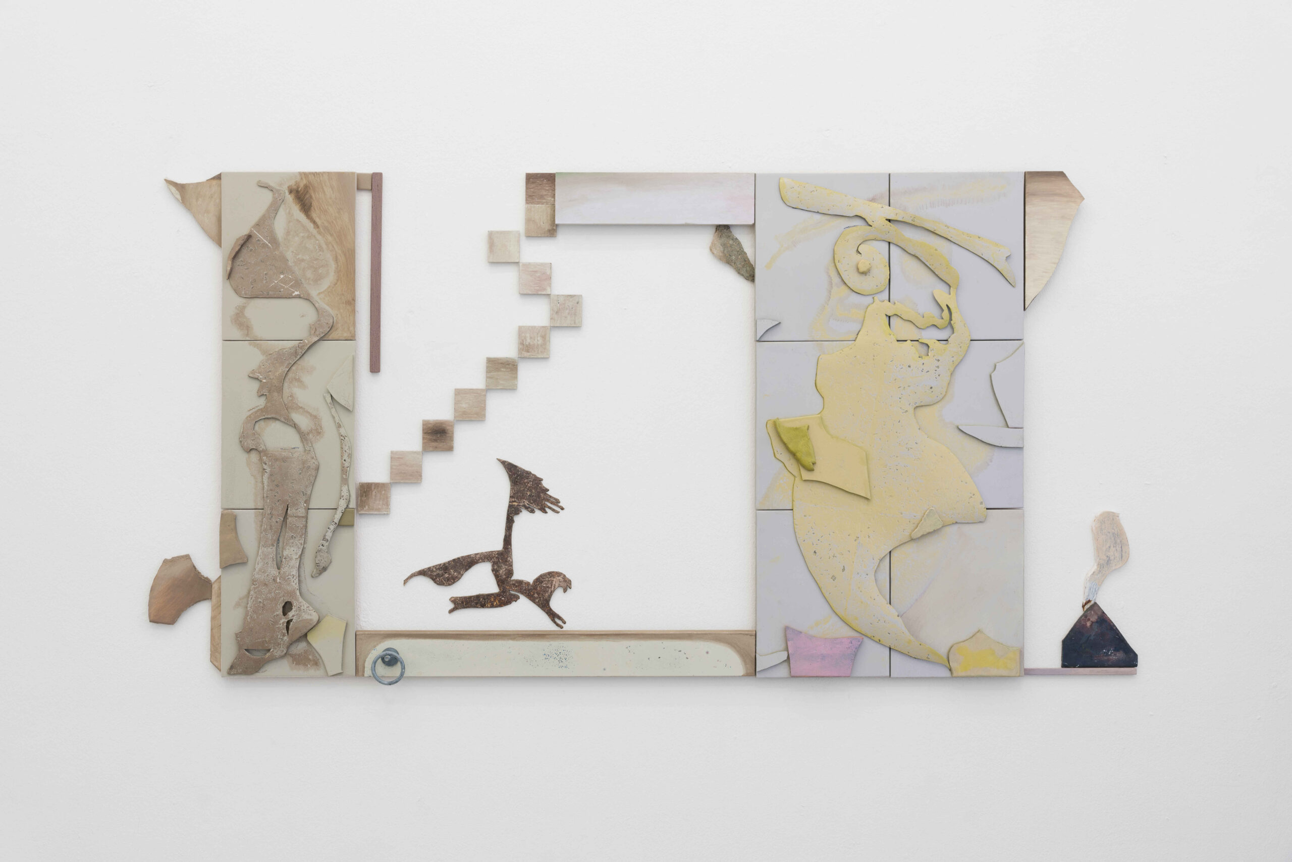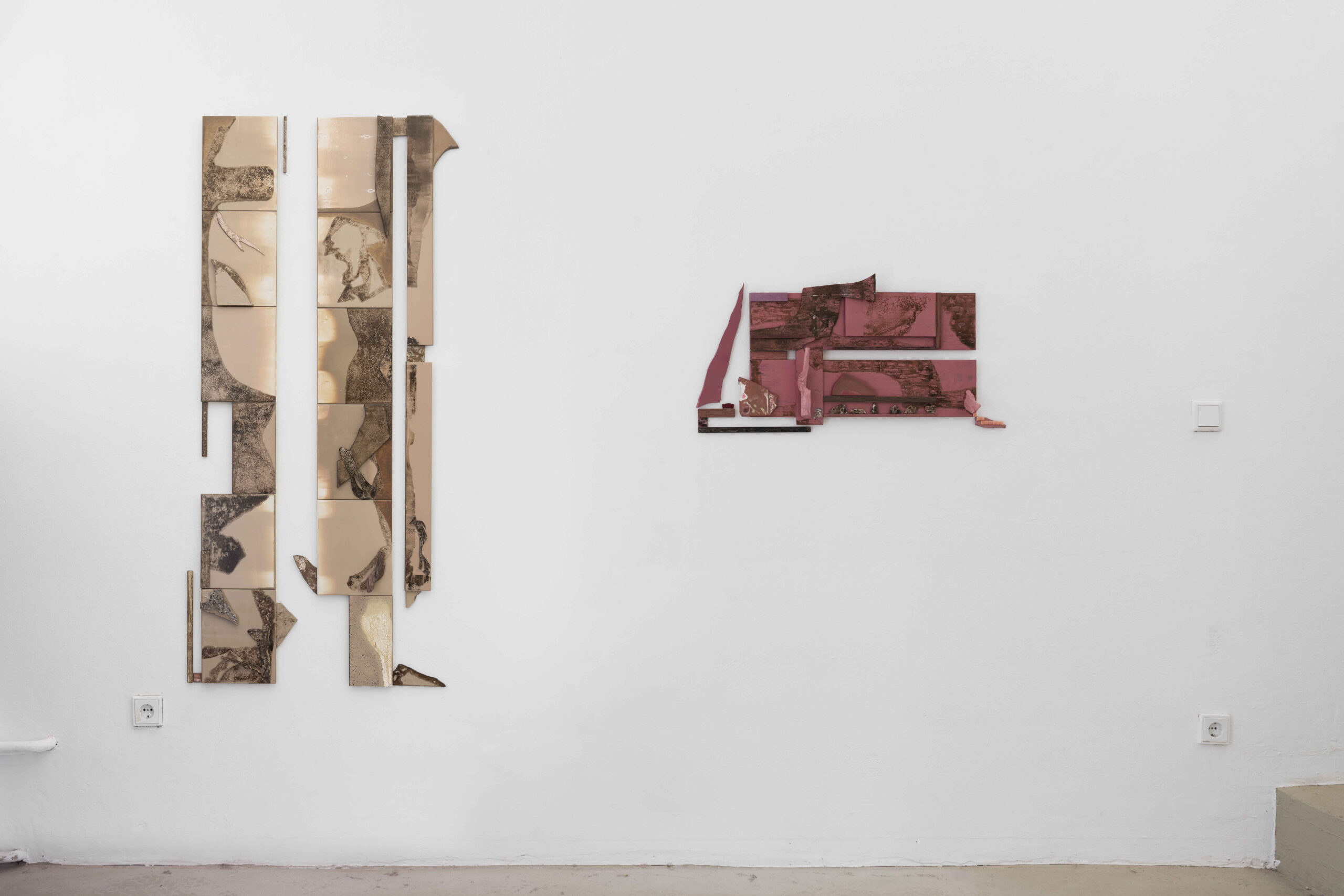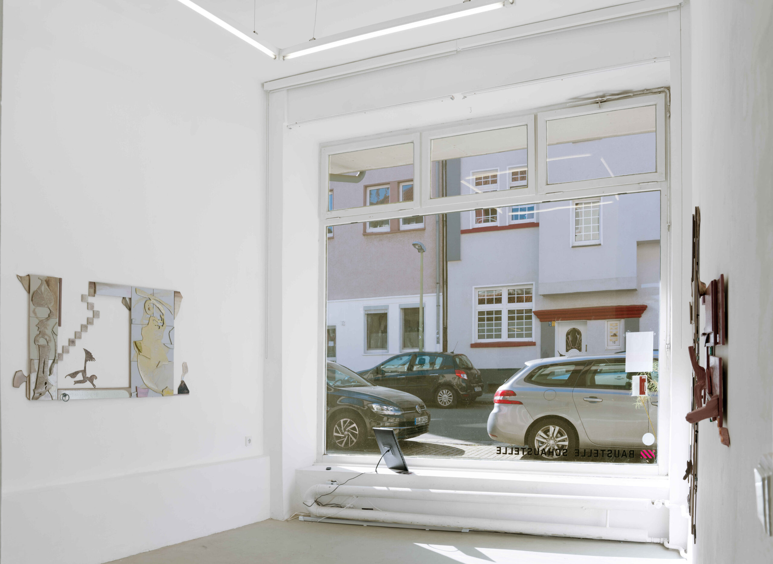 Angesammelt und aufgestapelt ruhendes Material längst vergangener Leben. Aus diesem Archiv schöpfend wachsen im Nebeneinander und Übereinander Gebilde aus unterschiedlichen Materialien, die sich neu angeordnet von Tag zu Tag verändern, bis sie letztlich in ihrer Endgültigkeit münden. In der Ausstellung mit dem Titel „walnut as thick as my neck“ sind collagierte Wandinstallationen zu sehen, die sich zwischen Malerei und Objekt bewegen.