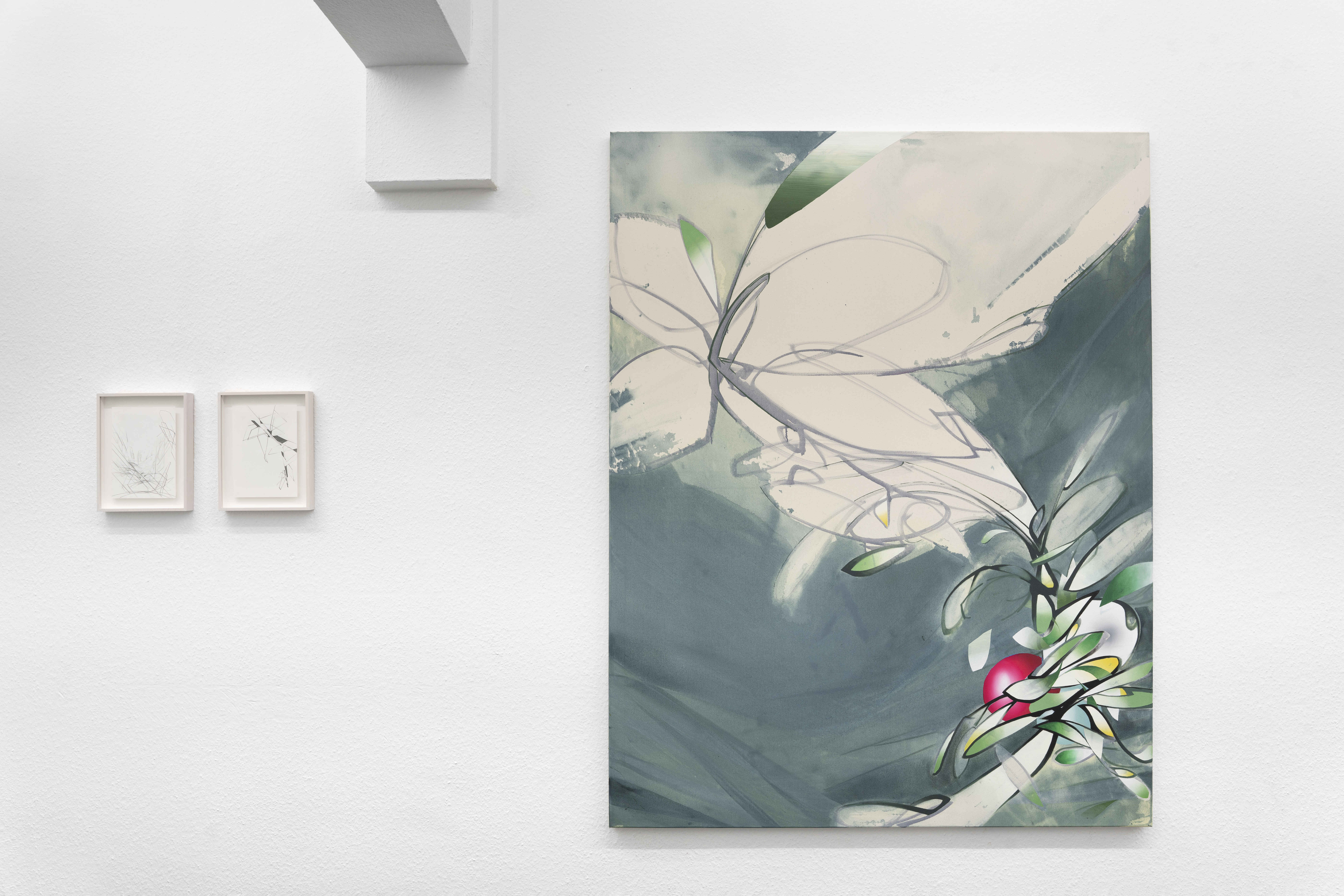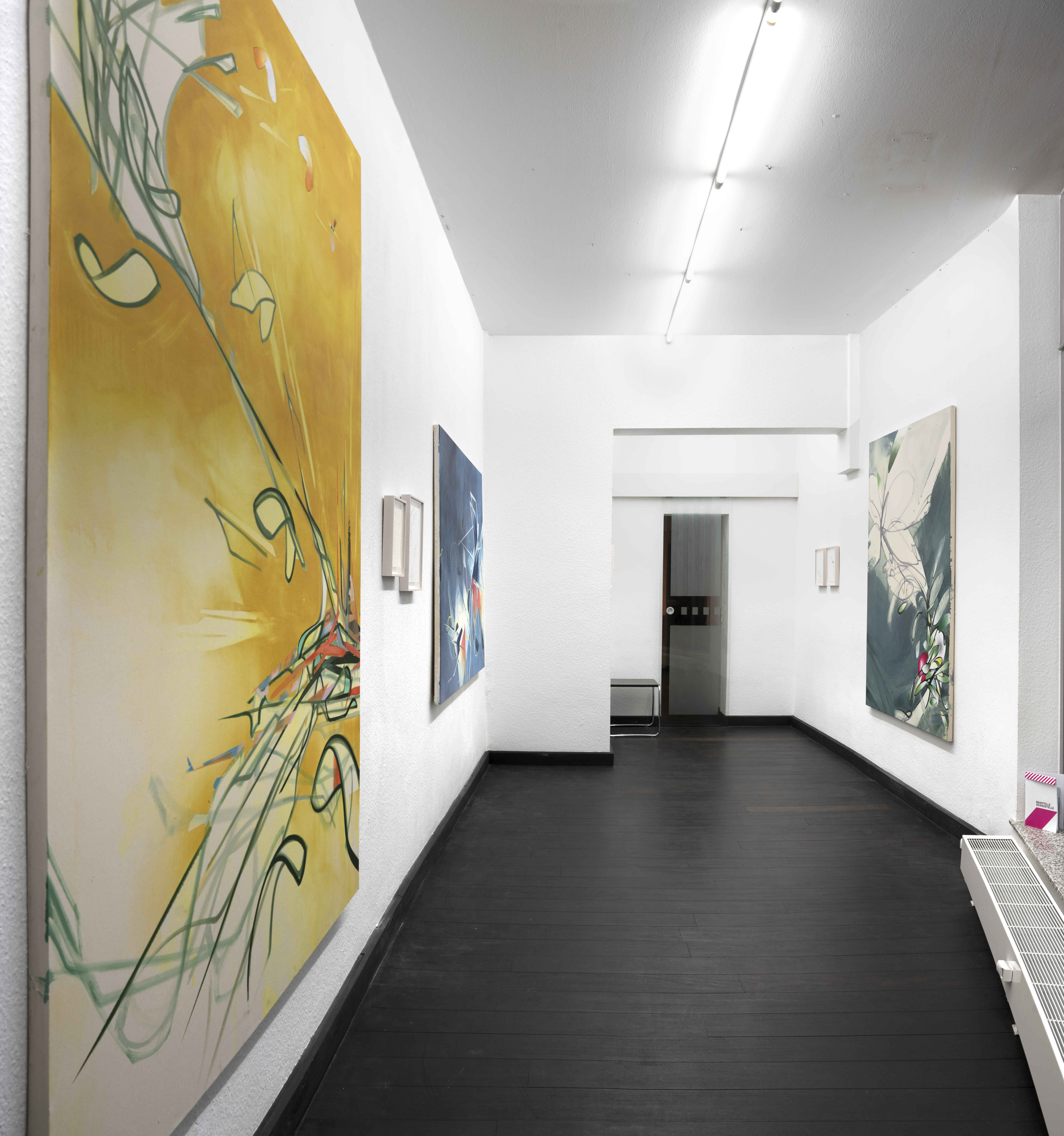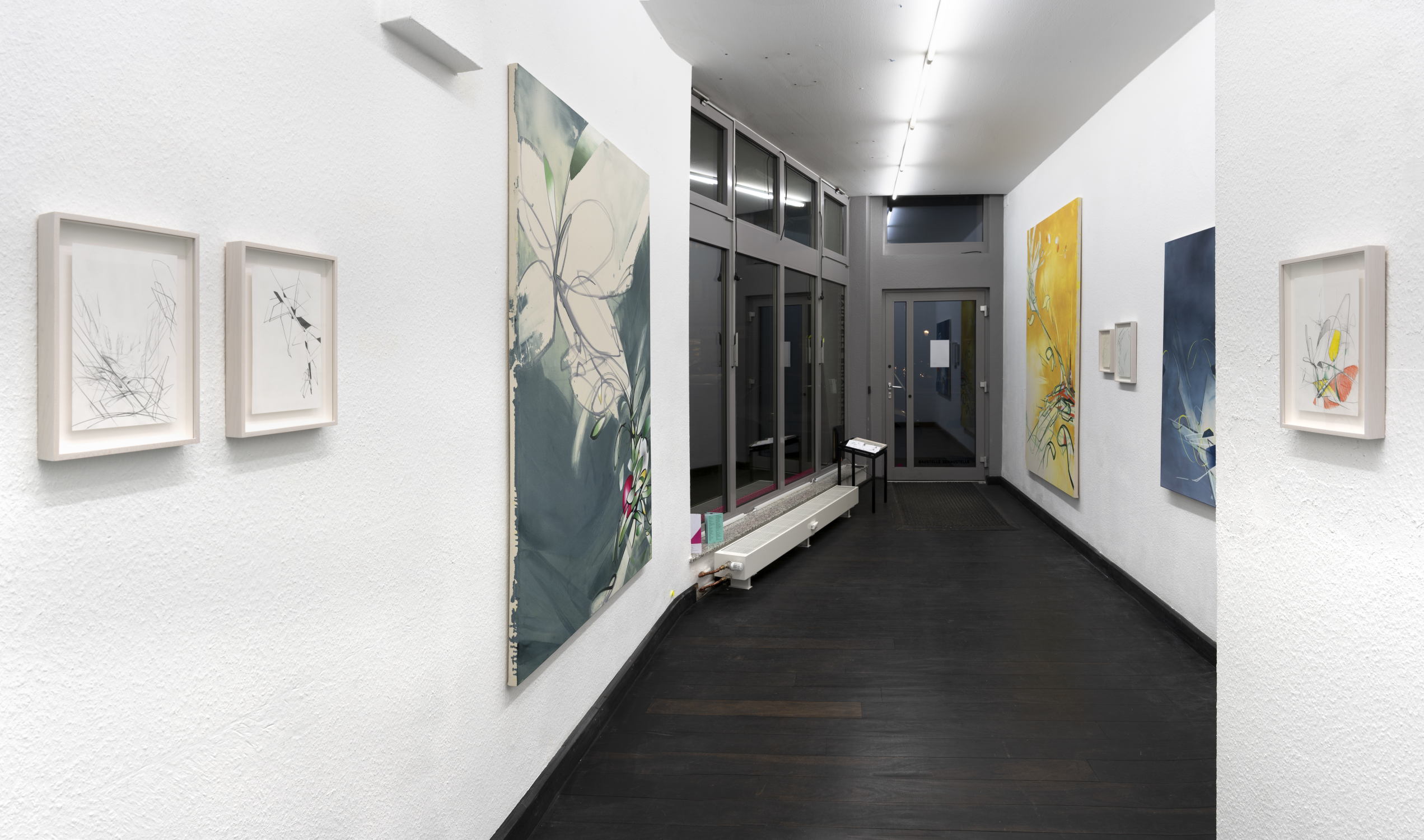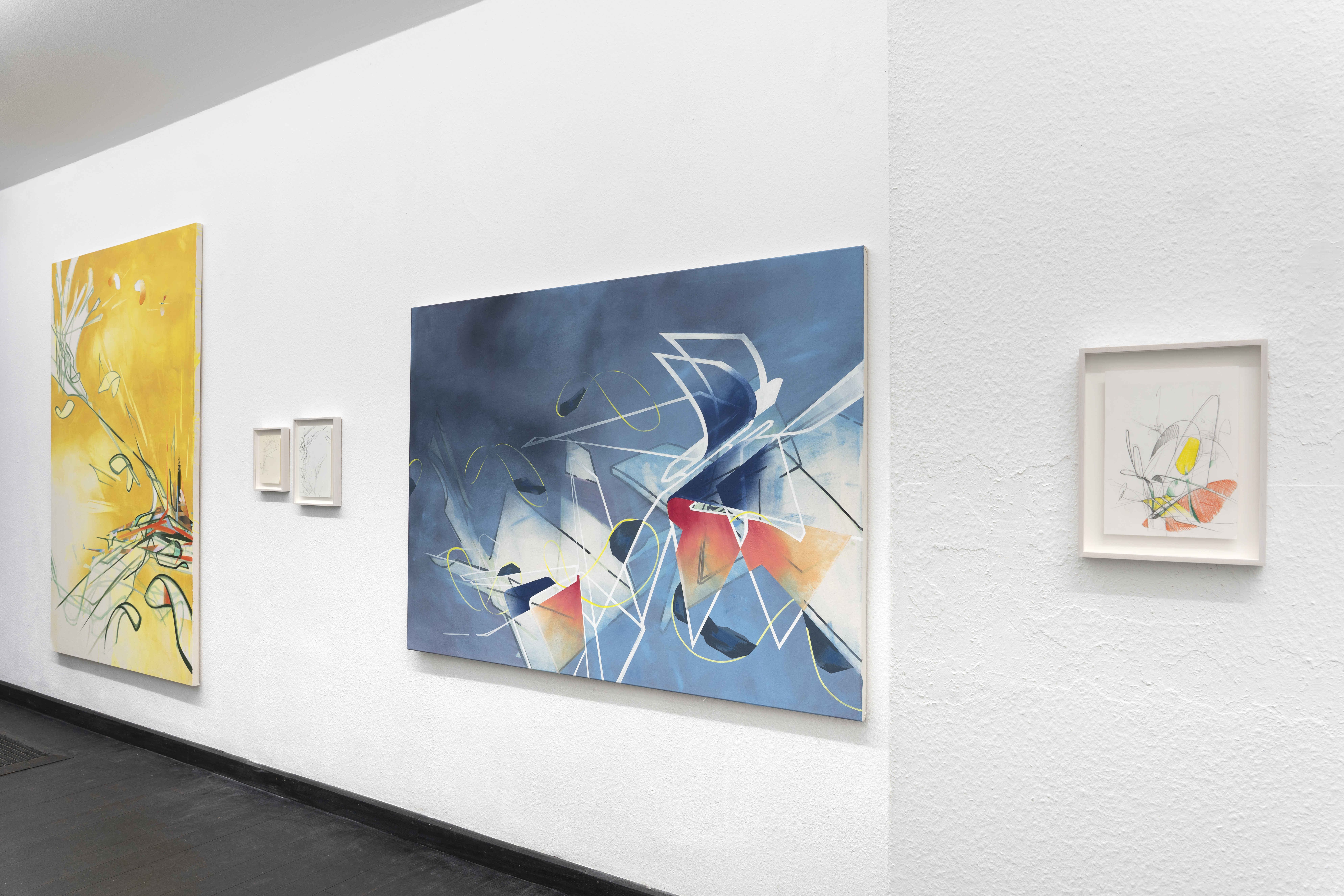 Die Ausstellung “GERADEKURVE” legt den Fokus auf Malerei und Zeichnung und den Arbeitsprozess dazwischen. Beide Disziplinen sollen sich auf Augenhöhe begegnen. Es wird erkundet, wie sich Zeichnung und Malerei beeinflussen und auf engem Raum zueinander verhalten. Teilweise begegnen sich die Arbeiten als “Werkgruppen” innerhalb einer Technik, aber auch als eigenständige Standpunkte bezüglich ihrer individuellen Merkmale: Farbe, Größe, Material.