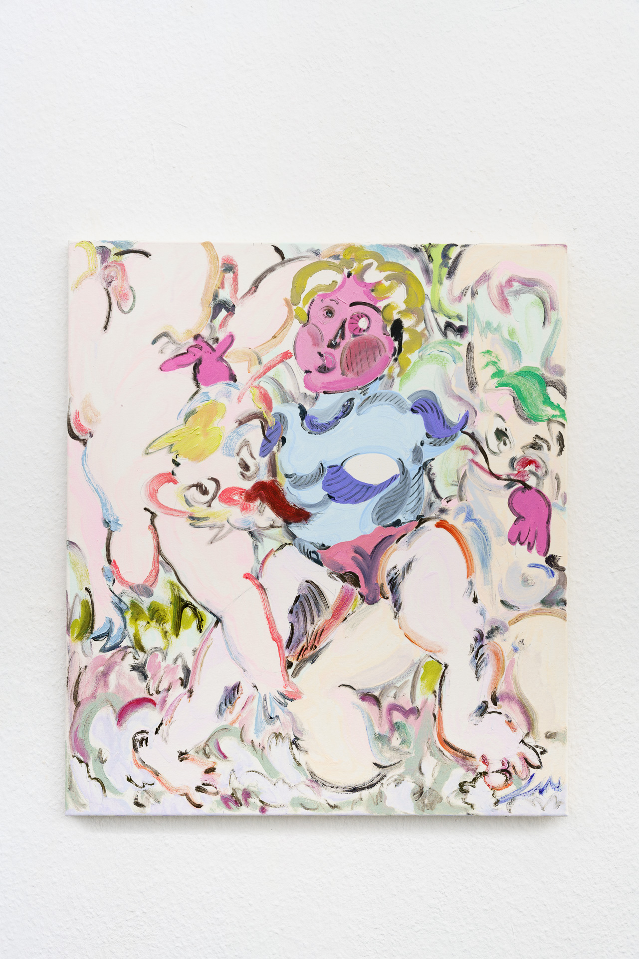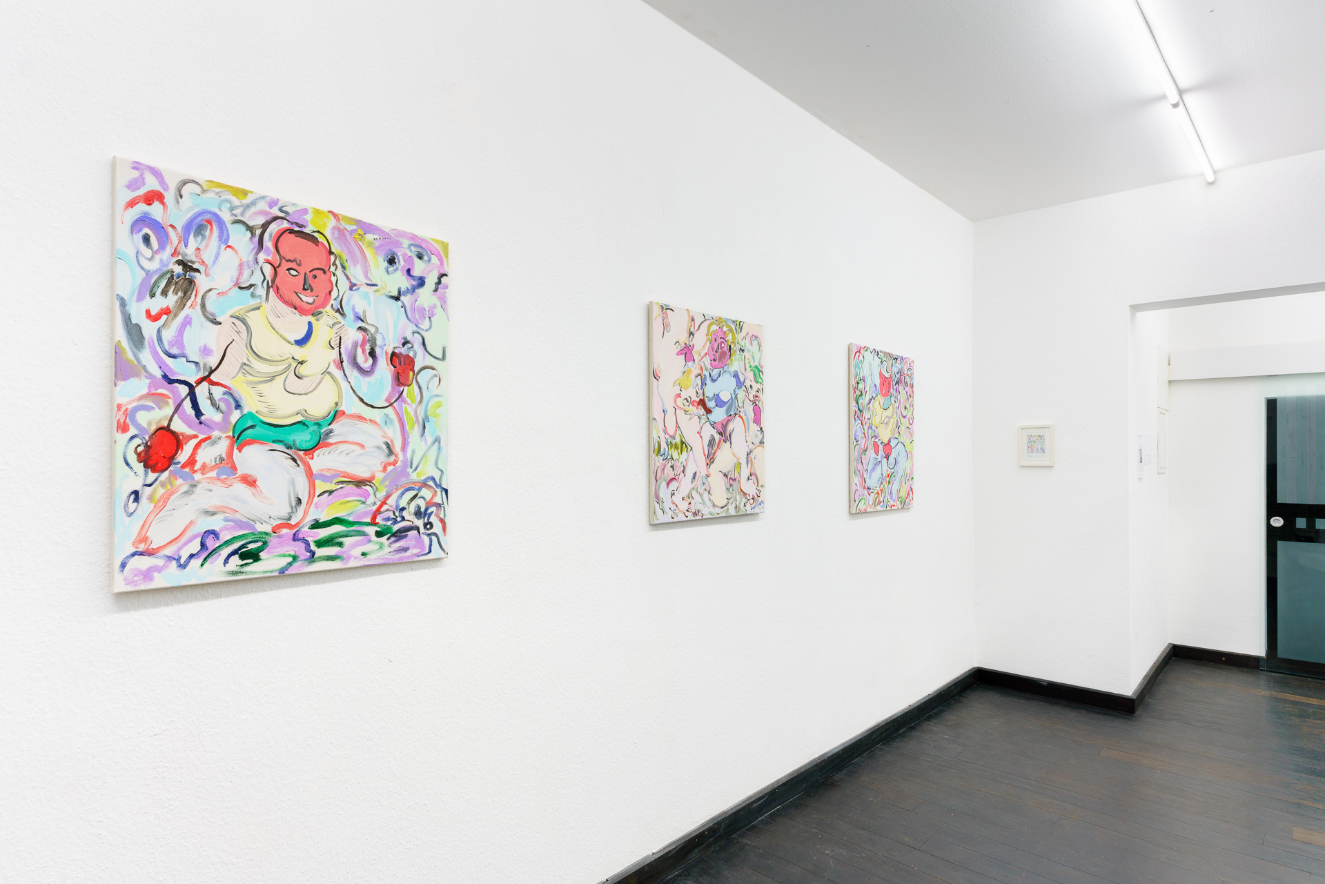 Ihre Arbeiten verwenden hauptsächlich Ölfarbe und Acryl als Medium, die jeweils voller kindlicher Neugier und Geschichtenerzählen sind. Xinyan ist sehr sensibel im Umgang mit der Farbe. Sie skizziert und beschreibt die Formen schnell, die fließenden Linien sind entspannt und lässig, sodass eine leidenschaftliche kreative Begeisterung in den Bildern zu spüren ist. Sie ist es gewohnt, das Bild in zwei Teile zu teilen: Der Vordergrund ist eine großflächig flach gemalte Figur, der Hintergrund ist absichtlich unscharf, der Körper wird durch grobe Linien beschrieben.