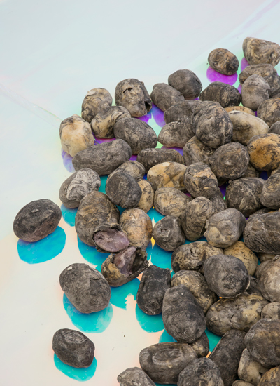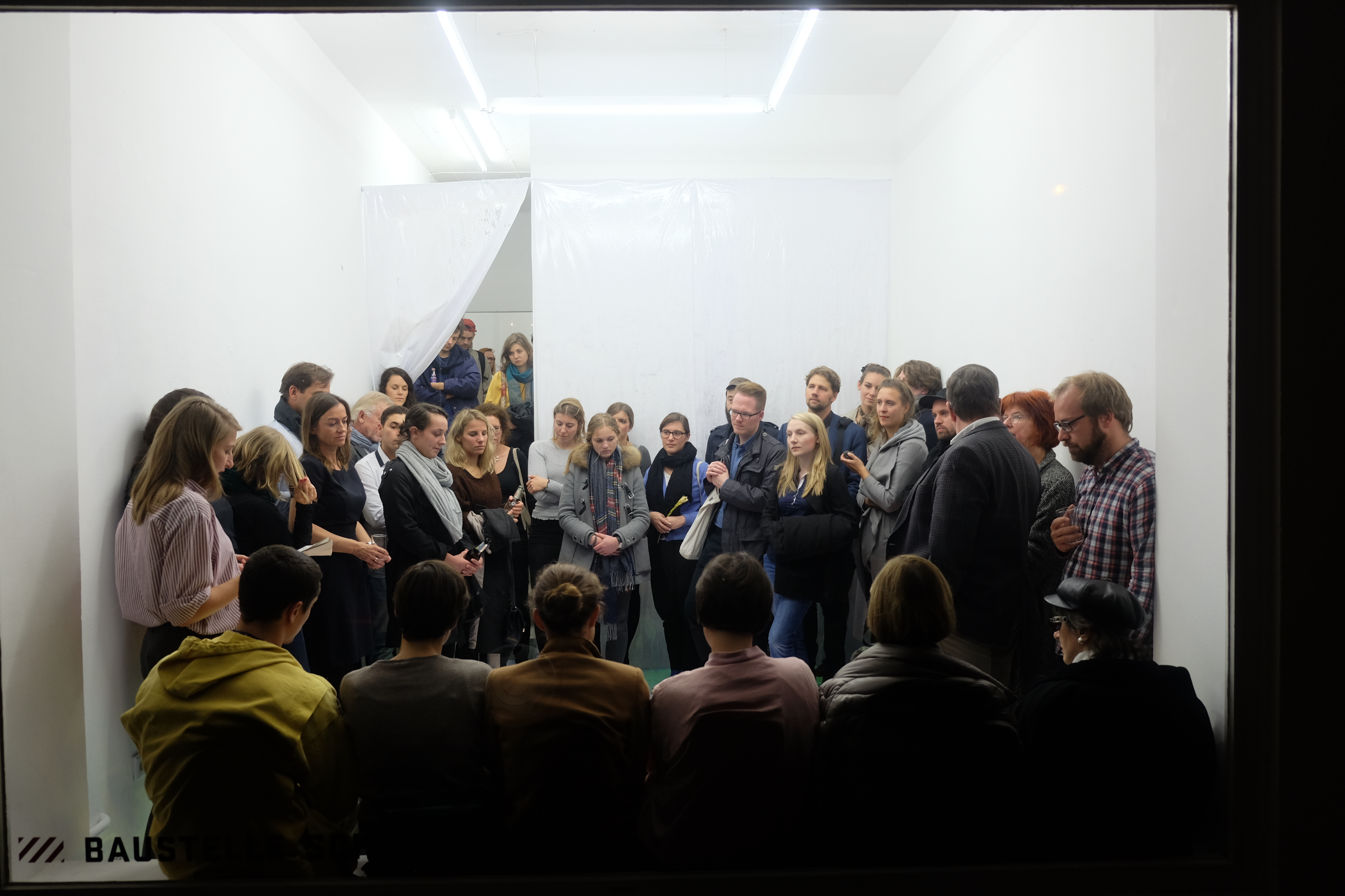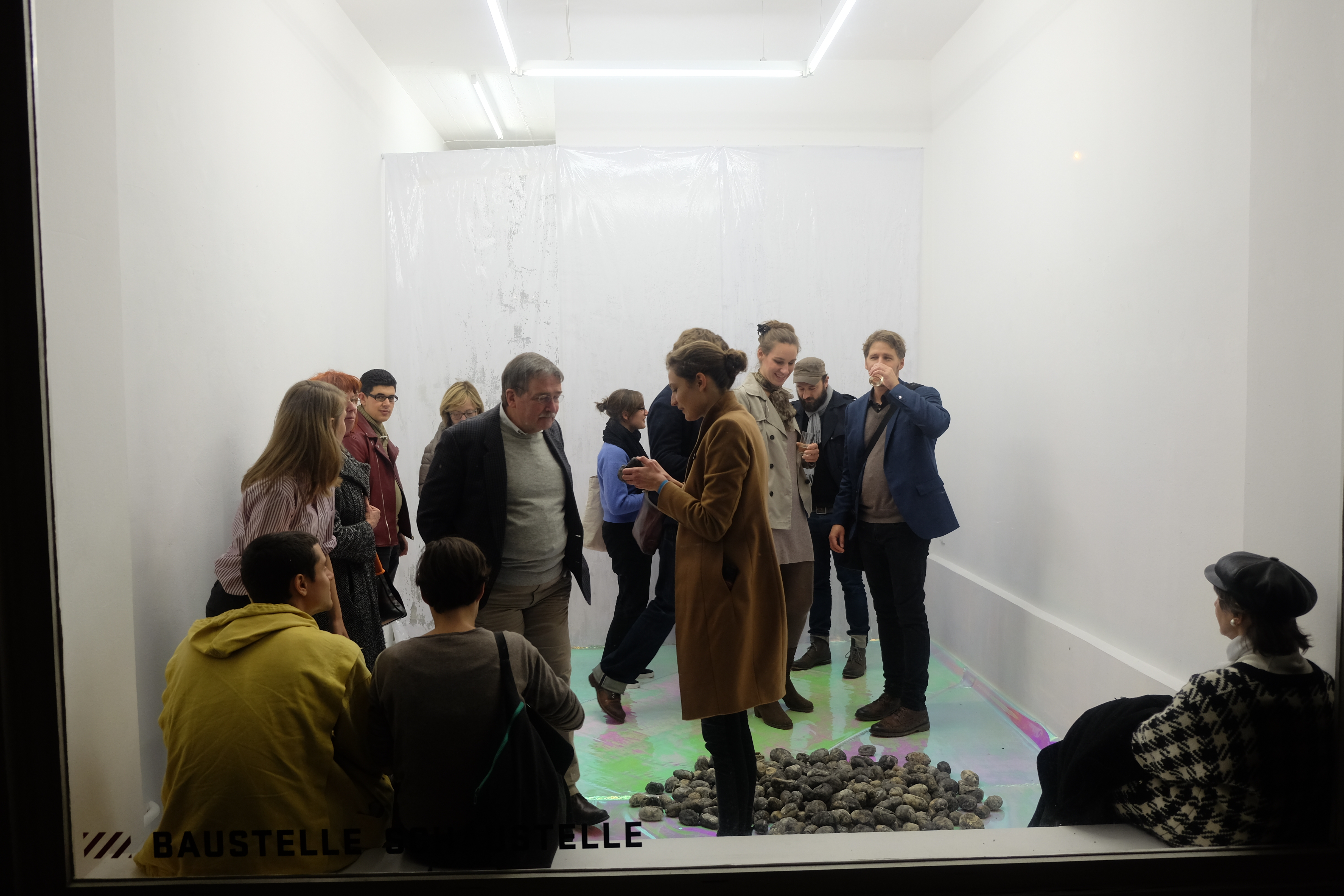 Die drei verfolgen bereits seit 2015 neben ihrer eigenen künstlerischen Produktion eine kollektive Arbeitsweise, deren gemeinsamer Ausgangspunkt in der Materialität ‚Plastik’ liegt. In ihren temporären Environments arbeiten sie u.a. auch mit Nahrungsmitteln. Der Alltäglichkeit beider Materialien werden in einer räumlichen Installation ihre ambivalenten bis berauschenden Versprechen abgerungen, während die Möglichkeit unmittelbarer Partizipation gegen eine formale Präsentation und Wahrnehmung antritt.