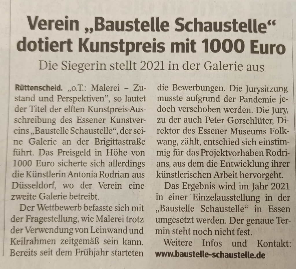 Die WZ berichtete am Mittwoch, 4. März, im Teil Düsseldorfer Kultur über Rebecca Racine Ramershoven, ihre Arbeit und ihre Ausstellung in der Baustelle Schaustelle e.V. im Rahmen der Photo+.