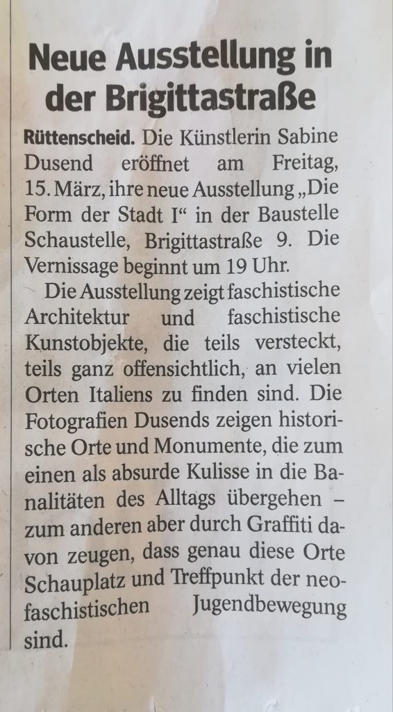 Die WAZ berichtete über die Ausstellungseröffnung von Sabine Dusend.