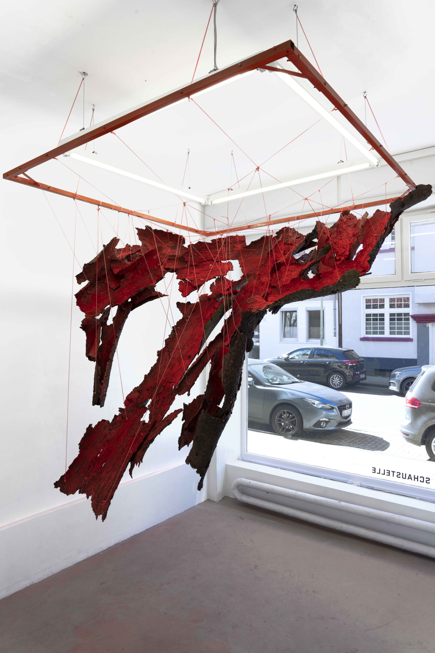 Ich folgte diesem Gedanken und entwickelte für die BauSchau Essen ein Projekt mit dem Ziel die Einigung von menschlicher und nichtmenschlicher Autorschaft vorzunehmen. Zentral sind die Buchdrucker/Kupferstecher (Borkenkäfer), die qua Namen bereits Anerkennung für ihren schöpferischen Drang als nichtmenschliche Künstler erlangen konnten. Zu ihrem Euvre gehören „Landart“, „Grafik“ und „Skulptur“. Aus diesem Werk wird eine hängende, raumgreifende Installation, die der Formgebung nach den Möglichkeiten ihrer materiellen Beschaffenheit entspricht. An der Wand werden ihre Holzarbeiten zu einem Historiengemälde, dass den Zeitpunkt der Offenlegung des menschlichen Irrtums der Herrschaft über die Natur festhält: