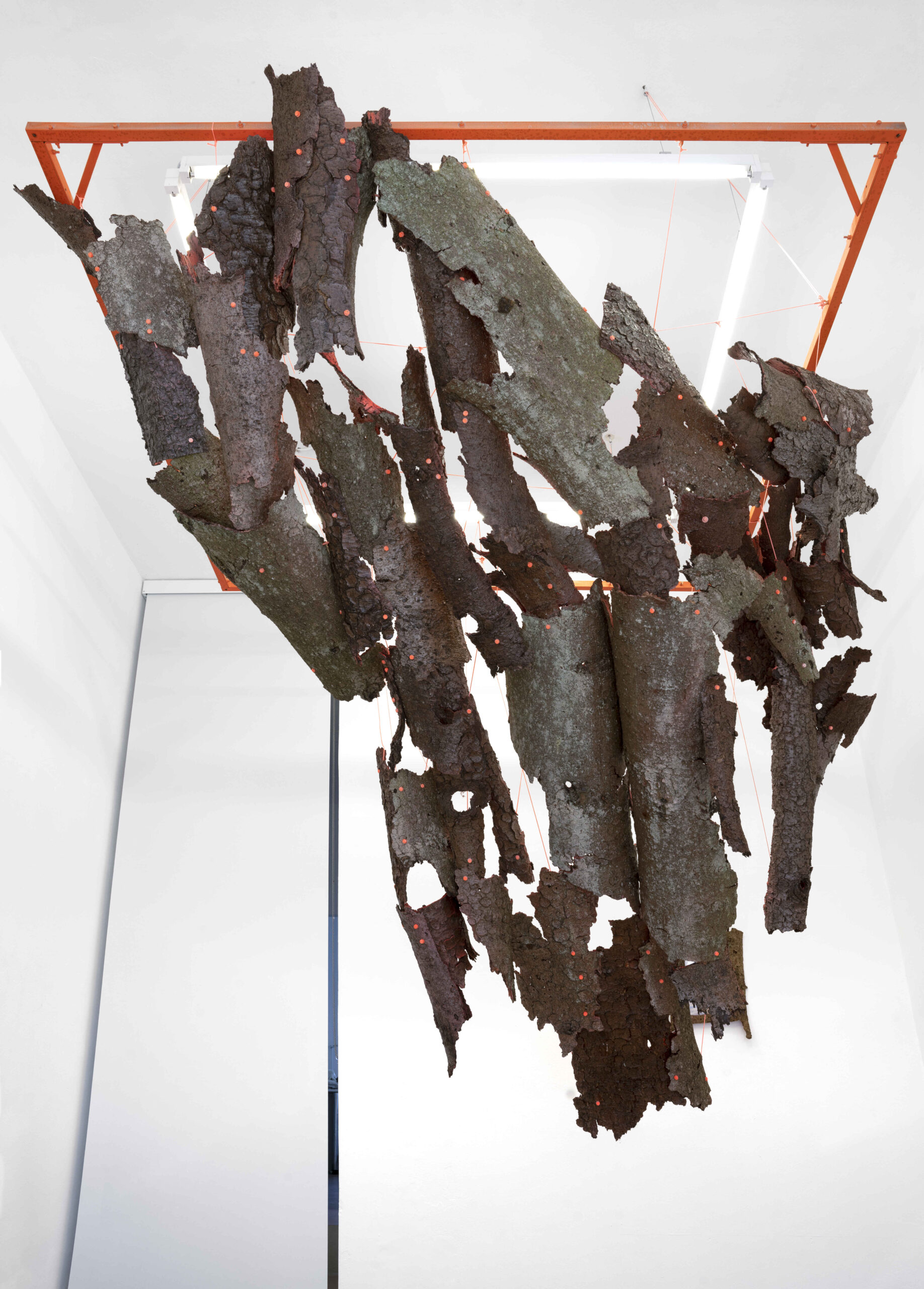 Bisher werden ihre Werke nach menschlichen Maßstäben eingeordnet. Diese deklarieren sie zu Schädlingen, da sie sich der für Menschen nützlichen Logik entziehen. Hierzu werden die Rinden mit einer Fotografie gegenübergestellt. Darauf abgebildet ist der Autobahnausbau der A49 durch den Dannenröder Forst. Die Kontur der Baumkronen vor dem Horizont bildet dabei eine vergleichbare Form wie die einer Einschlagschneise, die durch den Befall von Buchdruckern in vielen Regionen Mitteleuropas bekannt ist. Während die Buchdrucker unumstritten als gefährlich konnotiert sind, wird bei der A49 diskutiert. Die Mobilität für Menschen wird gegen das Ökosystem abgewogen. Die Borkenkäfer wiederum machen, genau wie die Menschen, die sich für den Ausbau der Autobahn einsetzen, nur das, was für sie selbst am profitabelsten ist. Riesige Straßen zum Vermehren der eigenen Spezies. Die damals so profitabel scheinenden Fichtenwälder im Sauerland wurden gekapert. Gaia schlägt zurück. Die Menschen bleiben machtlos.